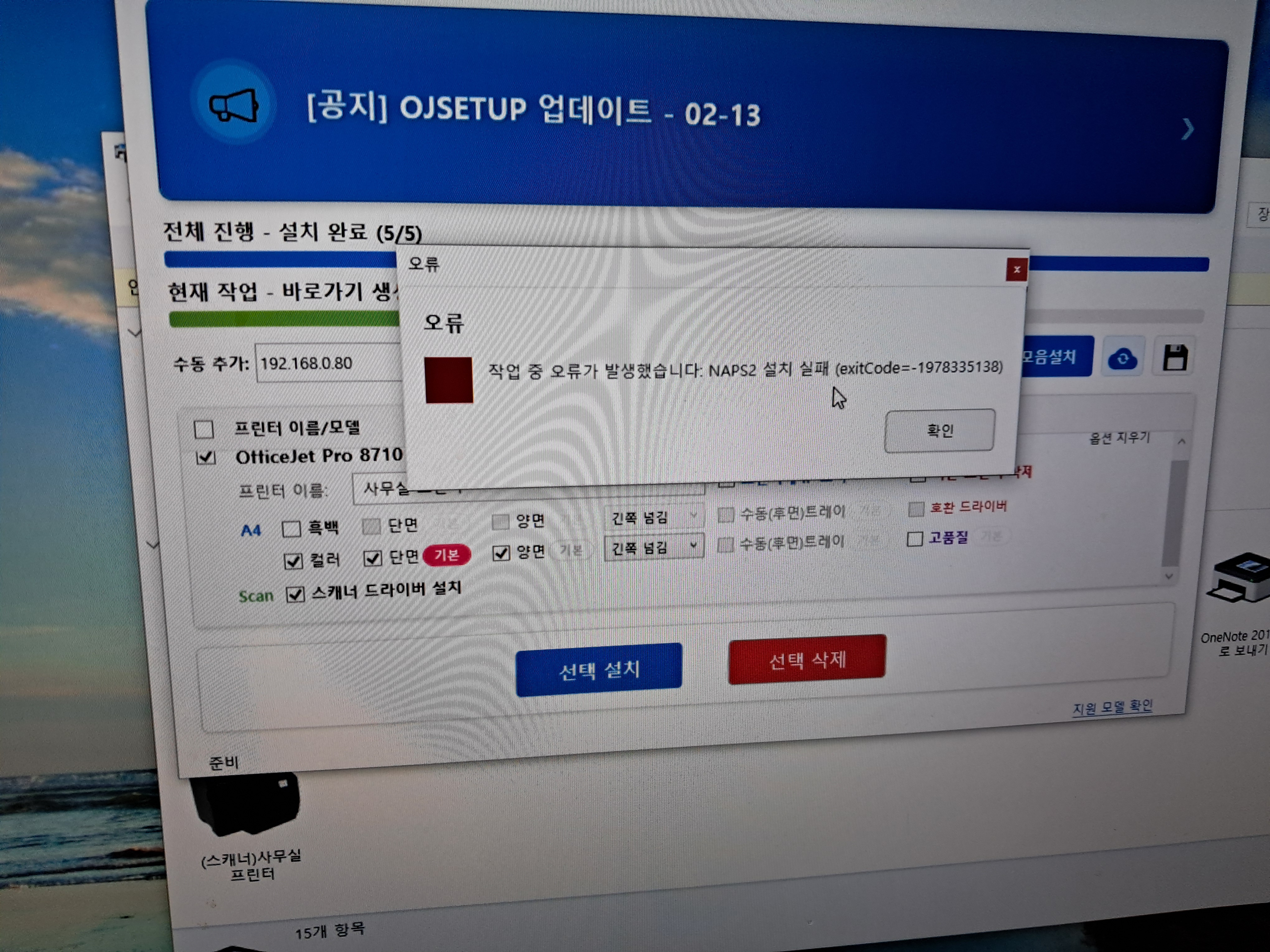 스캐너 드라이버 설치시 오류