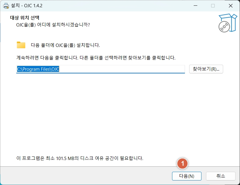 설치할 위치를 지정후 다음을 누릅니다. 기본 설치 위치를 권장 합니다.