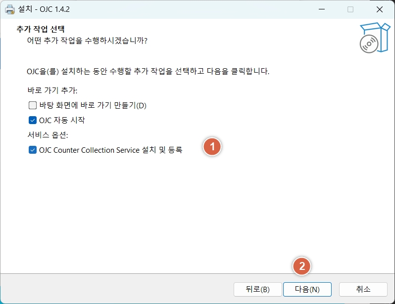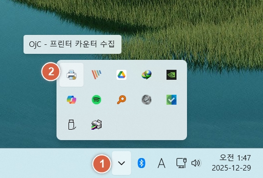 윈도우 오른쪽 아래 화살표를 클릭후 2.번 OJMANAGER 프로그램을 더블클릭해서 실행 합니다.