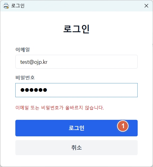 발급받은 서버 주소와 계정 정보를 입력하여 로그인합니다.